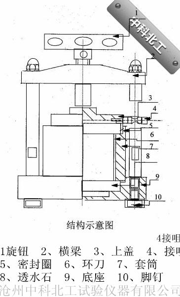 儀器主要由上蓋,底座,套座,環刀,透水石,螺桿等組成(見示意圖)。