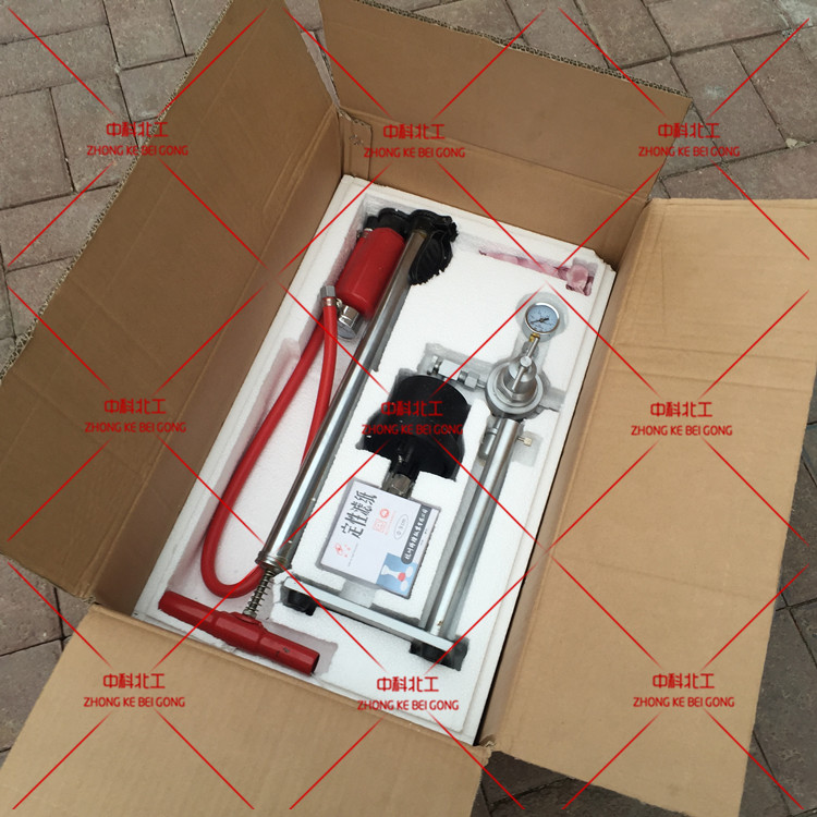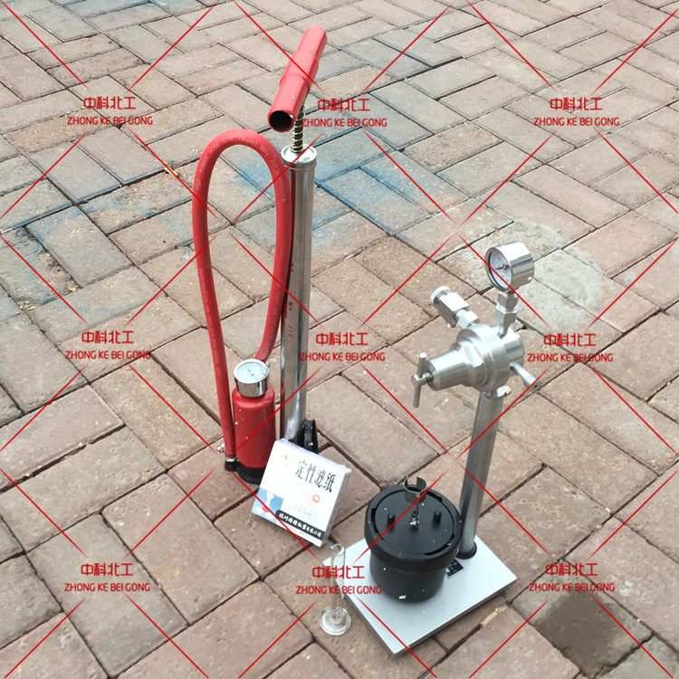 由打氣筒提供的壓縮空氣,經減壓閥后可調整為所需要壓力值送往泥漿杯(進入泥漿杯的通道由放氣閥控制)杯內的泥漿因壓差失水。當壓力表指針穩定的0.7Mpa時,計時30min,所流出的濾液即為該泥漿的失水量。客服電話:13 722705231當測量7.5min時失水量已大于8ml,此時的失水量乘以2,即為該泥漿的近似失水量,但需在記錄中注明測定時間為7.5min。