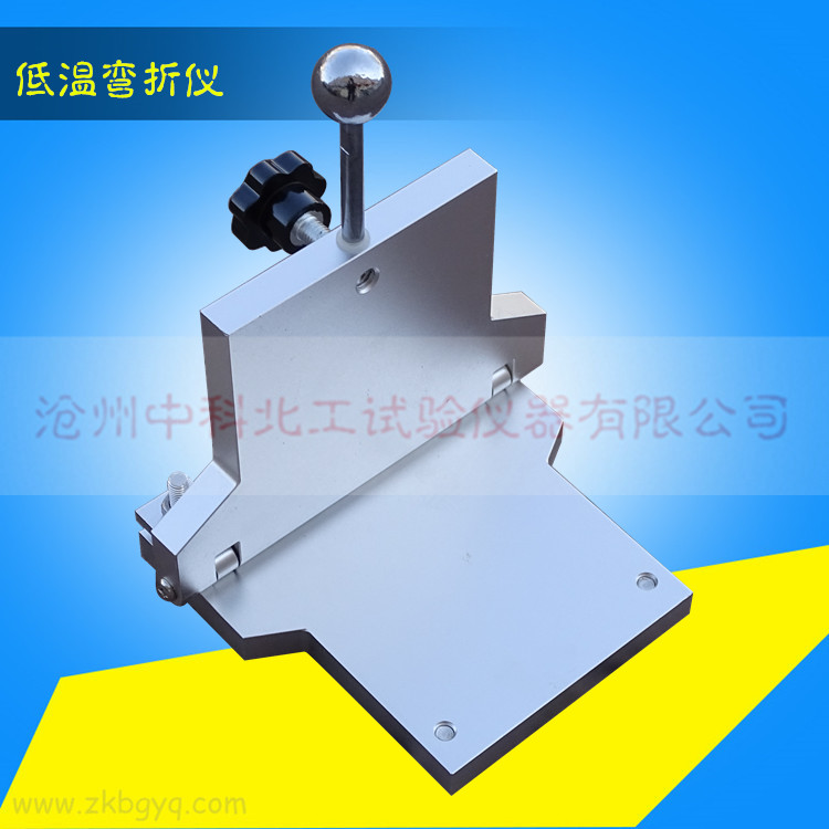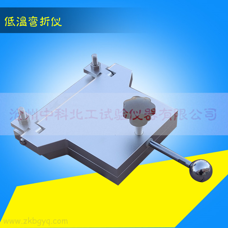 5、將彎折儀連同試樣放入低溫箱中,在規(guī)定的溫度下保持1小時(或2小時),然后在1S之內(nèi)將彎折儀上平板壓下,達(dá)到所調(diào)間距,保持1S,將試樣取出。