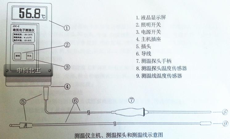 主機為便攜式儀表,設有電源開關、照明開關、插座和液晶顯示屏,可數字顯示被測溫度值,中科北工 并有夜間測溫讀數照明功能。為防塵防潮防磕碰,采用密封性能良好的薄膜輕觸開關和背帶式儀器套,也可打開主機后面的支架,置于桌面上使用。