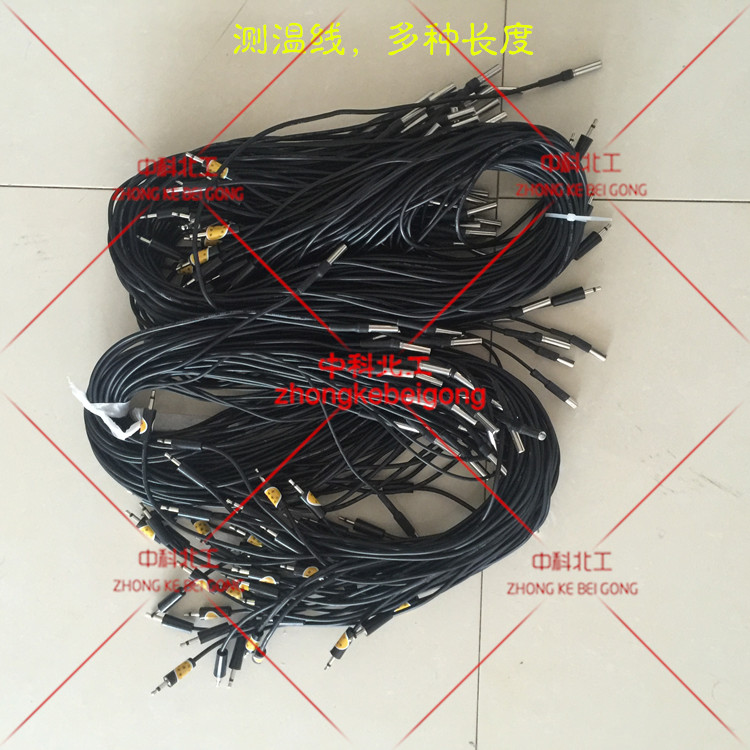 預埋式測溫線由插頭、導線和溫度傳感器制成。適宜測量混凝土內部溫度,每支測溫線可測一點溫度,在施工中可任意布置測溫點。為便于分層測溫,每支測溫線的插頭都貼有相應長度規格的標簽。