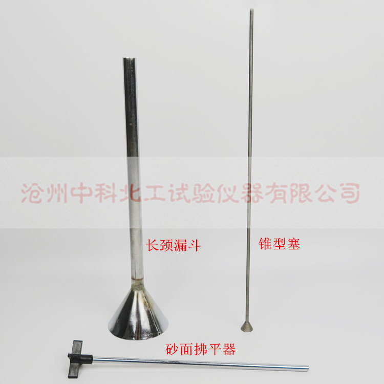 電動(dòng)土壤相對(duì)密度儀配件分別有:長(zhǎng)頸漏斗、砂面拂平器、錐型塞