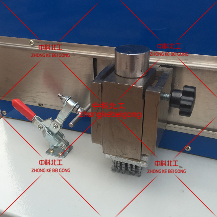 3、將刷子提起鎖緊,試件放在壓腳下壓緊,放下刷子。