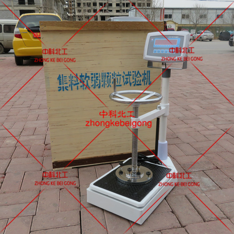 稱風干試樣2kg(m1),如顆粒粒徑大于40mm,則稱4kg, 過篩分成5mm-10mm、10mm-20mm、20mm以上(或方孔篩4.75mm-9.5mm、9.5mm-16mm、16mm以上)各1份;將每份中每一個顆粒放在壓力機平臺中心,按顆粒大小分別加以0.15KN、0.25KN、0.34KN之荷載,破裂之顆粒即屬于軟弱顆粒,將其棄去,稱處未破裂顆粒的質量(m2)。