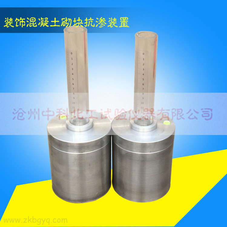 裝飾混凝土砌塊抗?jié)B試驗裝置是依據(jù)《JCT 641-2008 裝飾混凝土砌塊》國家建材行業(yè)標準生產(chǎn),適用于裝飾混凝土砌塊做抗?jié)B性能試驗,試件直徑為100mm園柱體。試驗裝置測量精度高,設(shè)計精巧耐用,該方法操作簡單,勞動強度小,能直接表述試件的抗?jié)B性能。