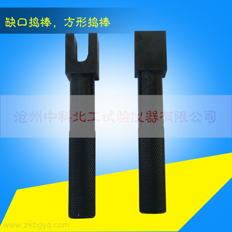 搗棒:包括方搗棒及缺口搗棒兩種,均用金屬材料制成。方搗棒受壓面積為23×23mm。缺口搗棒用于搗固測(cè)量釘頭二端的膠砂,產(chǎn)品符合《JC/T 603-2004 水泥膠砂干縮試驗(yàn)方法》。