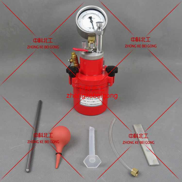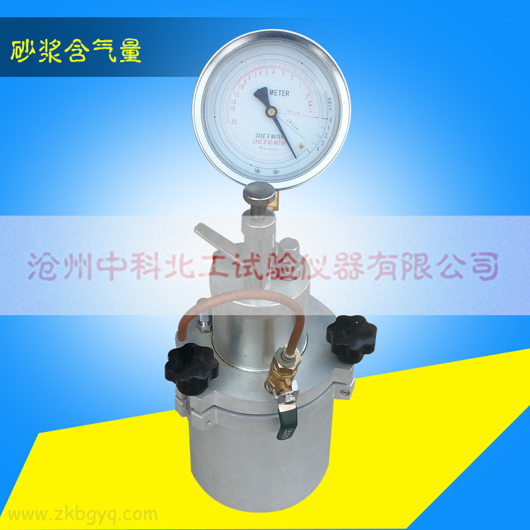 本儀器符合JGJ/T70-2009(建筑砂漿基本性能試驗方法標準)和JIA1228規范,用于測量砂漿中的空氣含量。其測定原理是根據氣態方程,保持一定壓力的氣室和裝滿試料的容器之間,開量即是砂漿中空氣所占的百分比,在壓力表上顯示出的即是試料中的空氣含量。