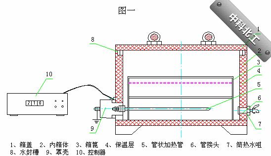 主要由箱蓋(1)、箱體(2)、箱篦(3)、保溫層(4)、管狀加熱器(5)、管接頭(6)、銅熱水咀(7)、水封槽(8)、罩殼(9)、控制器(10)等構成。