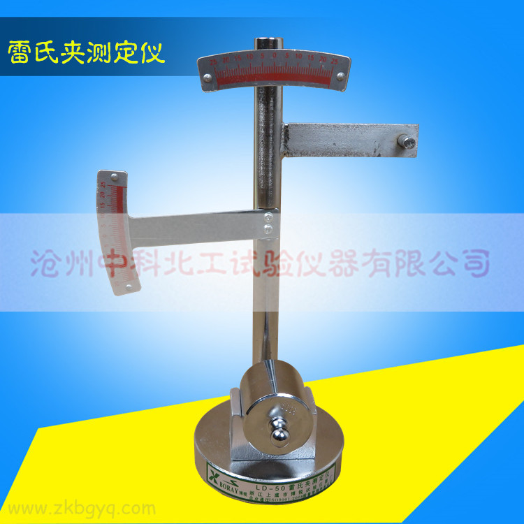LD-50雷氏夾測定儀(以下簡稱測定儀)用于檢驗雷氏夾彈性要求(具體見說明書4.1)和測定將標準稠度的水泥凈漿填滿雷氏夾環(huán)模中經(jīng)養(yǎng)護及沸煮一定時間后的膨脹值。