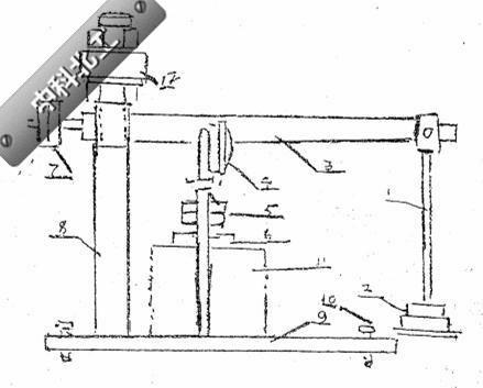 1、加載桿 2、砝碼 3、杠桿 4、百分表 5、壓頭 6、承載板 7、平衡體 8、立柱 9、底板 10、調平絲 11、試件 12、橫梁