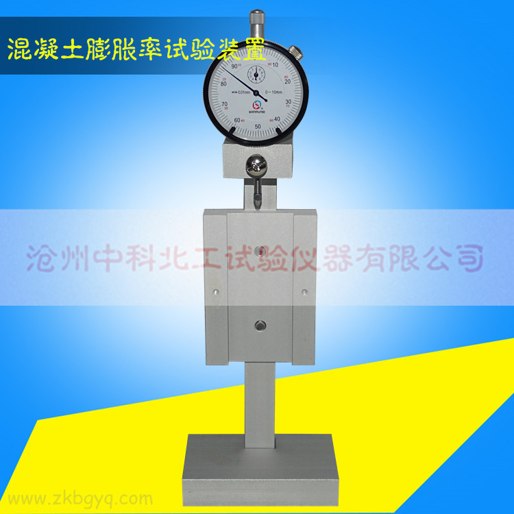 一、簡介 混凝土膨脹劑是與水泥、水板和后經水化反應生成鈣礬石、氫氧化鈣或鈣礬石和氫氧化鈣,使混凝土產生體積膨脹的外加劑。該試驗裝置符合混凝土膨脹劑的B法測量儀試驗,具有體積輕,結構簡單,操作方便,不容易生銹等優點。 二、技術參數 1、試件尺寸:40×40×140mm 2、產品重量:約2kg 3、千分表量程:0-3mm
