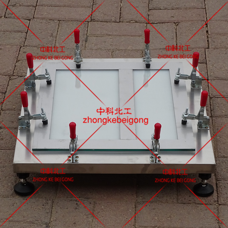 依據GB/T16777-2008標準設計制造的。本涂膜模具是建筑防水材料(聚氨酯類、聚丙烯酸酯類)拉伸性能系列試驗,制備試樣用的涂膜模具。用此涂膜模具能制出350mm×320mm×1.5mm的試樣膜,然后用切片機切割涂膜可制得符合GB/T528標準規定的啞鈴狀Ⅰ型試樣,以備不同拉伸試驗之用。