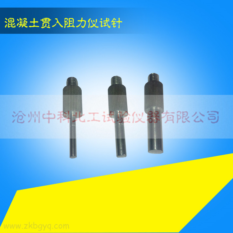 3、選裝上合適的貫入針。350N對應初凝貫入阻力(即2~3.5Mpa,此時用100 mm2貫入針);1000N對應中間貫入阻力(即3.5~20Mpa,此時用50 mm2貫入針);560N對應終凝貫入阻力(即20~28Mpa,此時用20mm2貫入針)。