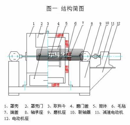 本試驗?zāi)ビ烧謿�、磨機,支座及電器控制箱等四大部分組成。