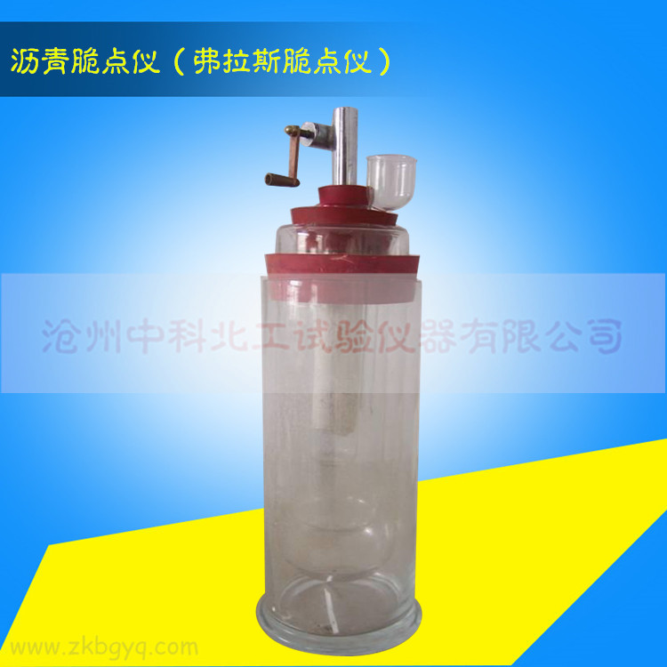 采用在一定的金屬片上涂一層瀝青薄模,在裝有冷卻裝置的保溫筒內,通過手柄使金屬片彎曲,隨著溫度的降低瀝青薄模的溫度易逐漸降低,當降至某一溫度時,瀝青薄模在規定彎曲條件下產生斷裂時的溫度(用酒精溫度計顯示)即為瀝青的脆點。