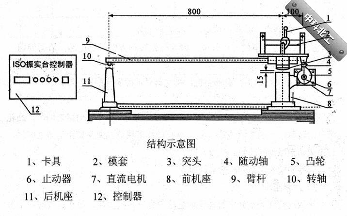 該儀器主要由振動(dòng)部件,機(jī)架部件和接近開(kāi)關(guān)程控系統(tǒng)組成。工作時(shí)由同步電動(dòng)機(jī)帶動(dòng)凸輪轉(zhuǎn)動(dòng),使振動(dòng)部件上升運(yùn)動(dòng),升到定值后落下,而產(chǎn)生振動(dòng)使水泥膠砂在力的作用下振實(shí),儀器計(jì)數(shù)自動(dòng)控制,60次后自動(dòng)停止,使用方便,計(jì)數(shù)準(zhǔn)確。