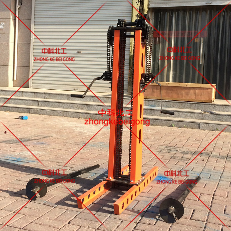 11、貫入結(jié)束后即可將探桿拔起,拔起時(shí)將山形板放在U 型卡塊下面,反轉(zhuǎn)搖把,是探桿拔起。當(dāng)拔過幾根后,搖把搖起來覺得輕松時(shí),可將搖把查到齒輪軸的軸頭上,這 樣拔桿速度可提高4 倍。