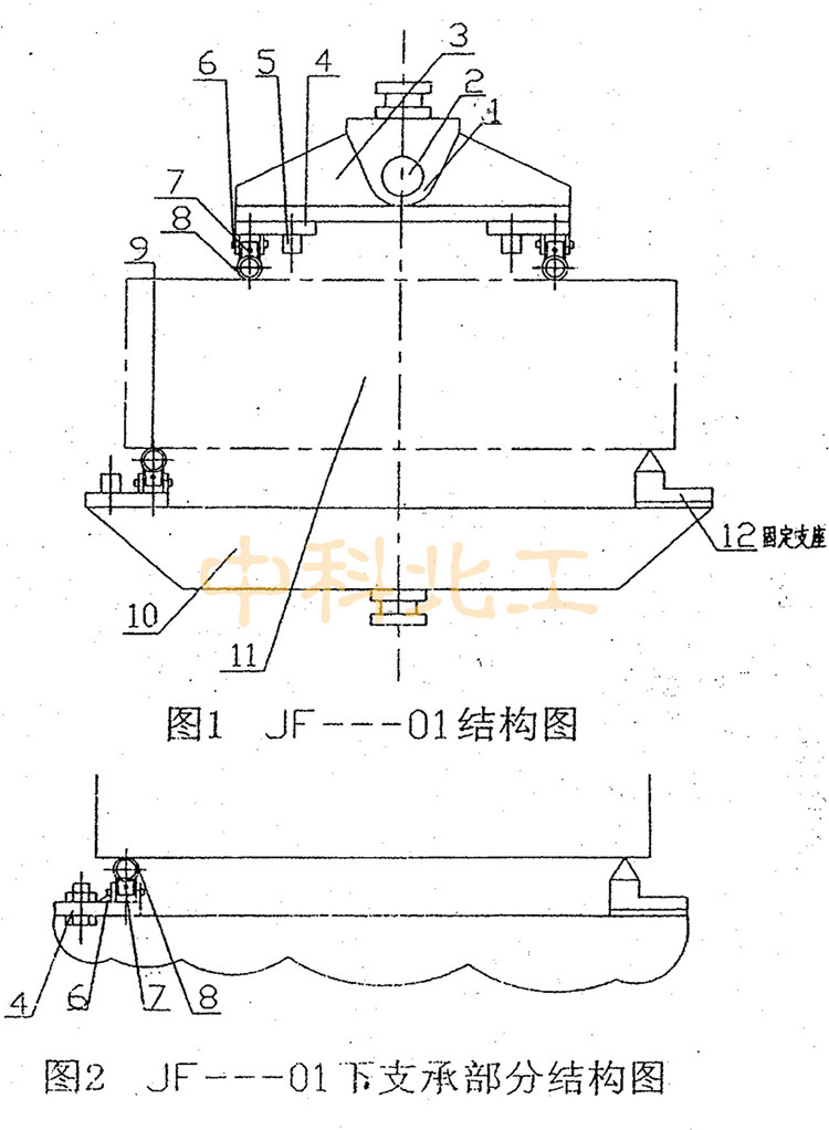 連接座1 通過其上端的銷與試驗機的油缸地面連在一起。軸2 將連接座1 與上壓頭做結合成一體,上壓頭3 可以左右轉動,活動頭座4 有螺釘5 緊固在 3 上,根據試樣的長度,可以調整它們的距離,小軸6 將壓頭支撐7 連在活動壓頭座內,壓頭支撐可以繞小軸前后轉動,壓頭8 通過拉板9 與支撐7 連在一起,壓頭8 可以轉動,底板10 可通過銷與試驗機上鉗口座連成一體,其上有兩個支撐 ,即由活動壓頭座4 、螺釘5 、小軸6 、壓頭支撐7 及壓頭8 組成。根據試樣長度,可以調整支撐的距離。試樣11 由兩個壓頭支撐著。