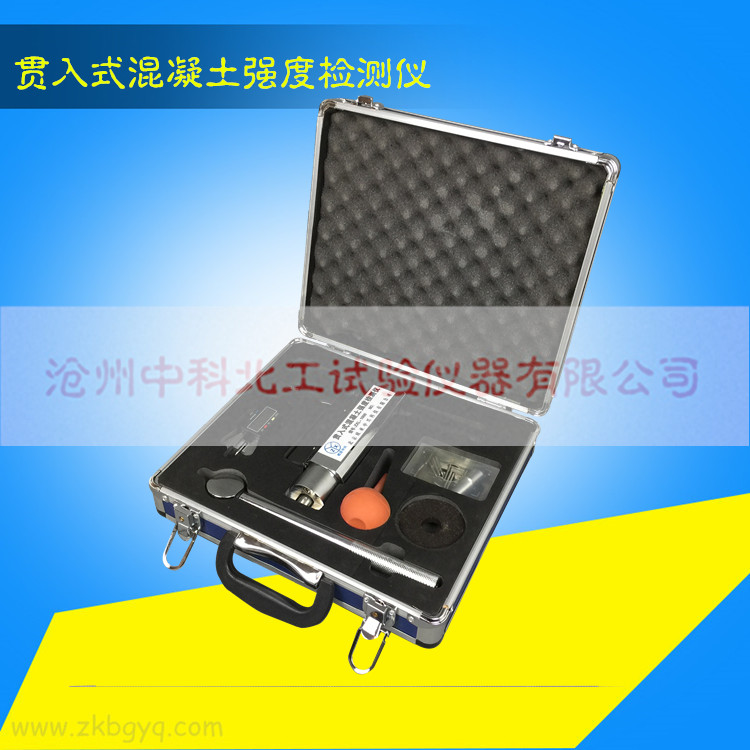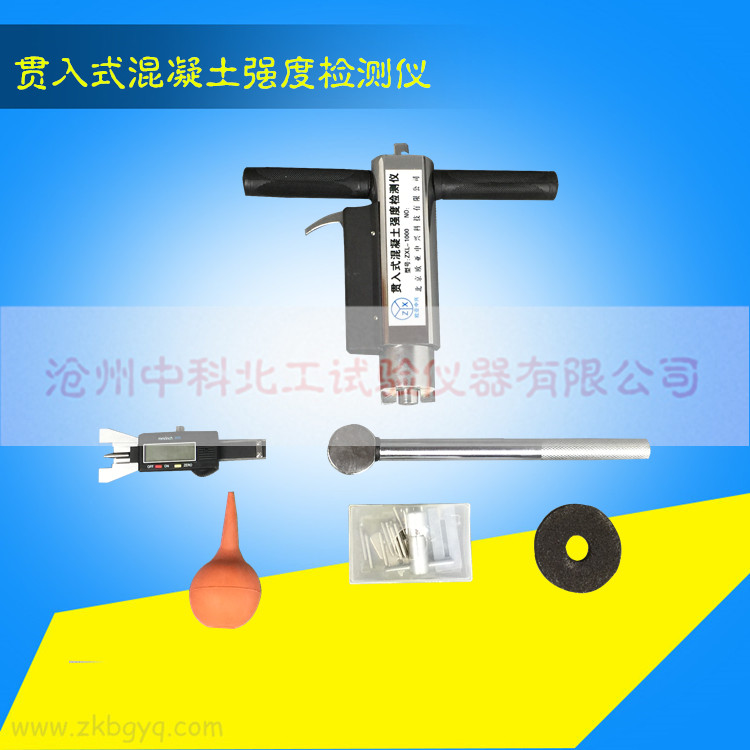 儀器的工作原理,是依據(jù)美國ASTMC803-82標準的貫入阻力原理,采用壓縮彈簧加載荷,把一鋼制釘貫入混凝土中。根據(jù)貫入釘?shù)纳疃葋砼卸ɑ炷恋膹姸取y釘?shù)呢炄肷疃扰c混凝土的強度成反比。即測釘貫入的越深,說明混凝土的強度越低。測釘貫入的越淺,混凝土的強度越高。通過在試驗室對大量不同配合比的圓柱體試件和立方體試件進行實測,取得了大量數(shù)據(jù)。并以此數(shù)據(jù),建立起混凝土強度與貫入深度的關(guān)系曲線。實踐證明,其測試精度完全可以滿足國家標準中規(guī)定的要求。